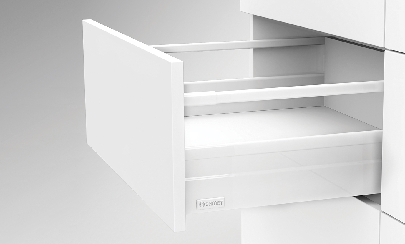 Gelişmiş mekanizması sayesinde kusursuz hareket kabiliyeti sunar ve entegre yavaş kapanma fonksiyonu, çekmecelerin sessiz ve kontrollü kapanmasını sağlar. Samet’in kaliteli tasarımı ile uyumlu olan AlphaBox, yüksek tolerans derecesi sayesinde ön panelin aletsiz montaj ve demontaj özelliği ile pratik kurulum imkânı sunar.