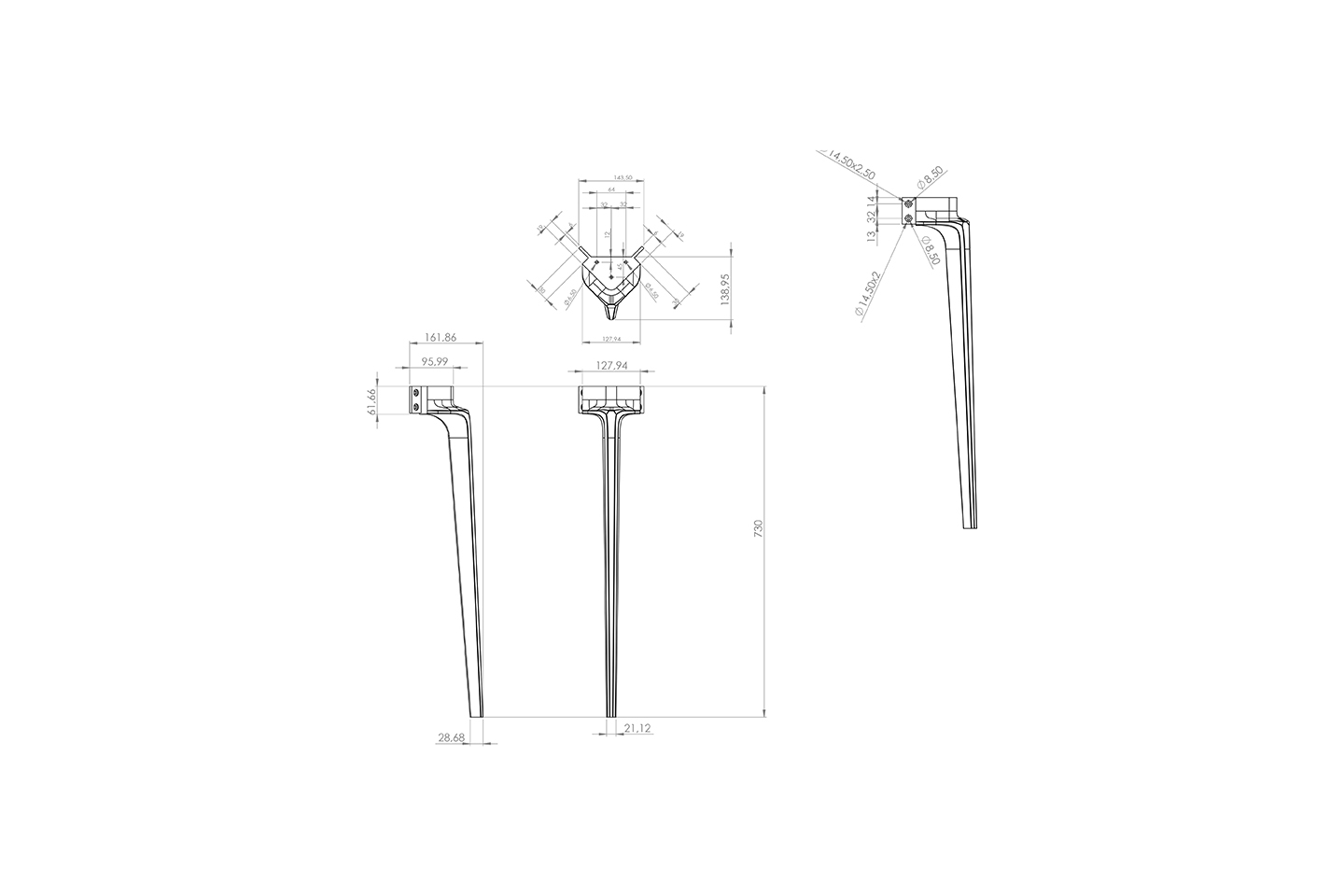 Dayanıklı yapısı ile uzun ömürlü kullanım sağlar, sağlam duruşuyla güven verir. Hem estetik hem de kullanım açısından öne çıkan bir masa ayağıdır.
