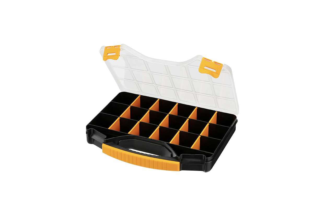 MANO Civata Kutusu (ORG13), vida, civata, somun, pul ve dübel gibi küçük parçaları düzenli şekilde saklamak için tasarlanmış pratik bir organizer kutudur. Şeffaf kapağı sayesinde içindeki malzemeler kolayca görülebilir, farklı bölmeleri ise ürünlerin karışmasını önler. Dayanıklı plastik gövdesi ile uzun ömürlü kullanım sunar.