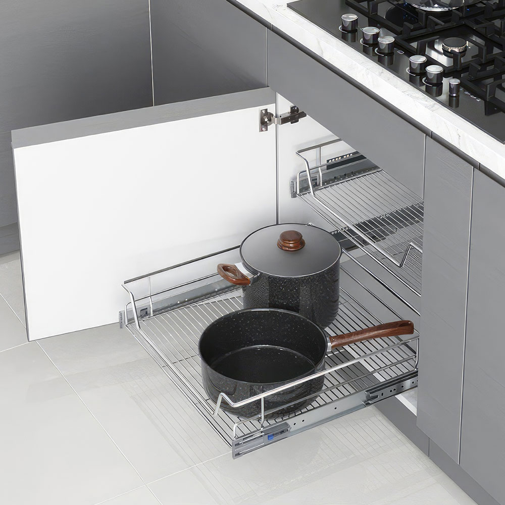 S-2010-C teleskopik raylı çekmece, mutfak dolapları ve modüler dolap sistemleri için pratik ve dayanıklı bir depolama çözümüdür. Teleskopik bilyeli ray sistemi sayesinde çekmece kolay ve sessiz bir şekilde açılıp kapanır. 50 cm kapak ölçüsü ile uyumlu olarak tasarlanmış olup, uzun ömürlü ve güvenli kullanım sağlar.