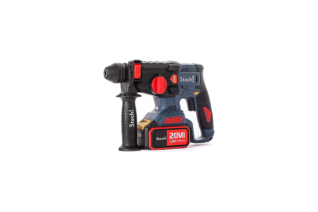 STECH SX52, 20 V gerilimde çalışan güçlü bir akülü kırıcı‑delici. 4,0 Ah kapasiteye kadar akü seçenekleriyle uzun süreli kullanım sunar. Yaklaşık 2,5 Joule darbe enerjisi sayesinde beton, tuğla ve taş gibi sert yüzeylerde etkili bir performans sağlar. SDS‑Plus mandren sistemi, ergonomik tasarımı ve akülü yapı sayesinde kablo derdi olmadan profesyonel sonuçlar verir.